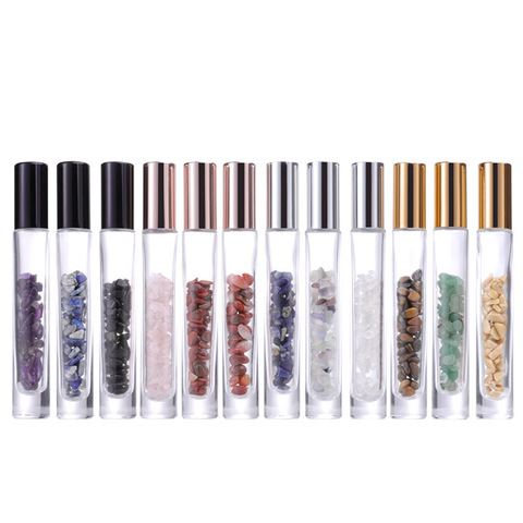 10Ml Natuurlijke Edelsteen Roller Voor Bal Fles Hervulbaar Glas Etherische Olie Lichaam Parfum Met Genezende Crystal Beauty Chips