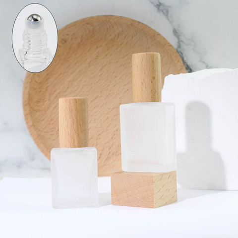 10ml 15ml düz kare temizle buzlu lüks boş küçük parfüm rulo rulo şişe üzerinde uçucu yağ cam seyahat konteyner